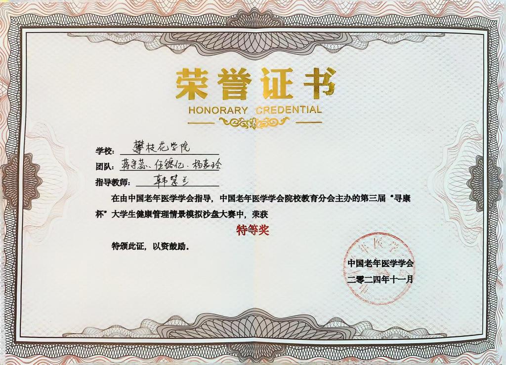 2024年11月17日,公司健管学子在全国行业沙盘竞赛中勇夺桂冠,获得了特等奖,实现了公司该奖项新的突破。此次比赛是全国健康服务与管理专业第三次行业大赛,共有来自全国87所高校的88支队伍参赛,由中国老年医学学会指导,中国老年医学学会院校教育分会主办,成都医公司承办。